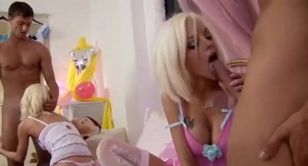«Мужики вдвоем развлекаются с тремя похотливыми развратницами в сексуальном белье. Эти цыпочки отсасывают их члены и отдаются в киски. Самцы взялись жарить цыпочек по очереди, чтобы насладиться киской и ротиком каждой. Девчонка очень понравился групповой секс, они прекрасно провели время и насладились половым актом. Эти жаркие бестии позволили самцам спустить сперму на их силиконовые сиськи мордашки.»