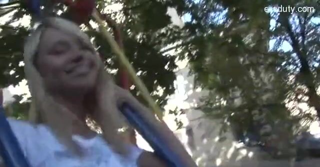 «Русская блондинка сперва качается на качели, а потом друзья предлагают ей заняться более взрослым и интересным занятием. Один парень ведет компашку к себе и там ребята угощают белокурую крошку с маленькими сиськами членами. А она оказывается совсем не робкой и не стеснительной, стройная сучка сразу же взялась сосать хуи, после чего отдалась в обе дырки. Девка ещё и любительницей анального секса оказалась.»