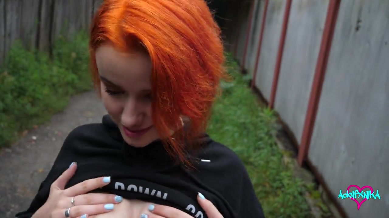 «Рыжеволосая русская красавица встретилась на улице с парнем с которым познакомилась в интернете. Перед тем как пойти к нему домой девчонка решила убедиться в его большом члене, и как только самец вывалил из штанов мужское хозяйство, он полностью оправдал все ее ожидания. Не устояв перед мощным болтом малышка присела на корточки и прямо посреди белого дня застрочила минет. В след за минет чувак отвел куколку в хату где лежа на кровати сделал ей кунилингус. После прелюдии изголодавшаяся любви бестия позволила новому любовнику опробовать узость ее сладкой киски, которую пихарь нацелился отодрать по полной программе.»
