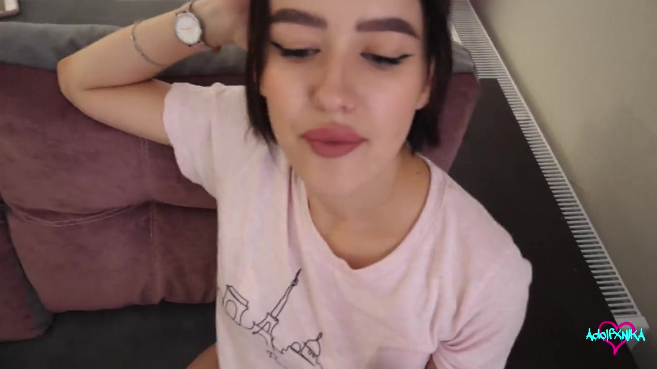«Русский парнишка подкатил к своей сучке и сразу попросил малышку чтоб она взяла у него в рот. Красавица всегда готова воплотить все желания партнера и как только она направил на болт видеокамеру от первого лица, ее нежные губки прикоснулись к увесистому детородному органу. После сказочно исполненного минета девица широко растопырила ножки и ощутила приятное проникновение во внутрь влагалища, упрашивая партнера не останавливаться как можно дольше. Чувак драл бестию из за всех сил, подарив няшной краля фантастический судорожный оргазм.»