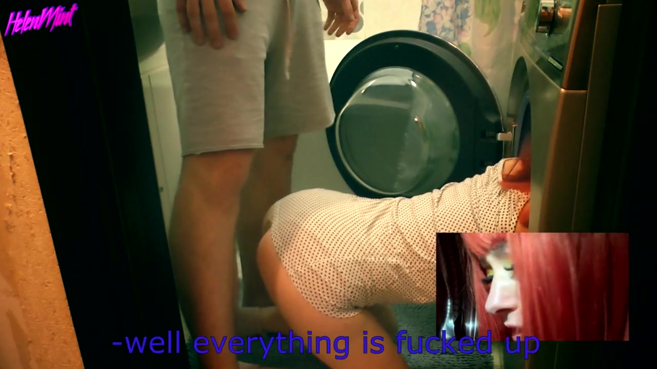 «Симпатичная рыжеволосая русская девчонка с нереально классной задницей на которую хочется смотреть вечно, решила простирнуть одежду. Увидев что в барабане что-то застряло няшная куколка поспешила вытащить посторонний объект, совсем не догадываясь что она там застрянет. К счастью для девушки в комнате находился ее братишка, которого она позвала на помощь. Поняв что крошка застряло там плотно, чувак не долго думая решил воспользоваться данной ситуацией и отодрать сучку так, как об этом давно фантазировал.»