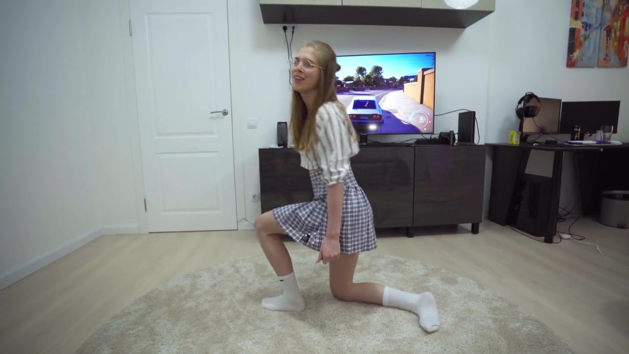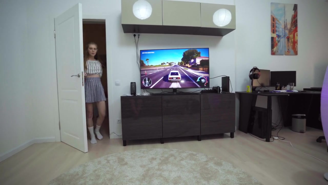 «Хорошенькая русская телочка забежала к парню в комнату и сразу начала его отвлекать от игры, переключая внимание ловеласа на свою шикарную задницу, которую она выставила без трусиков. Оценив роскошное тело девахи кавалер узрел поднявшийся фаллос, над которым любвеобильная краля начала работать губками, демонстрируя от первого лица незабываемую оральную прелюдию. Далее малышка вылезла влажной киской на счастливчика сверху, полностью оправдывая все ожидания пылкого любовника до полного совместного удовлетворения.»