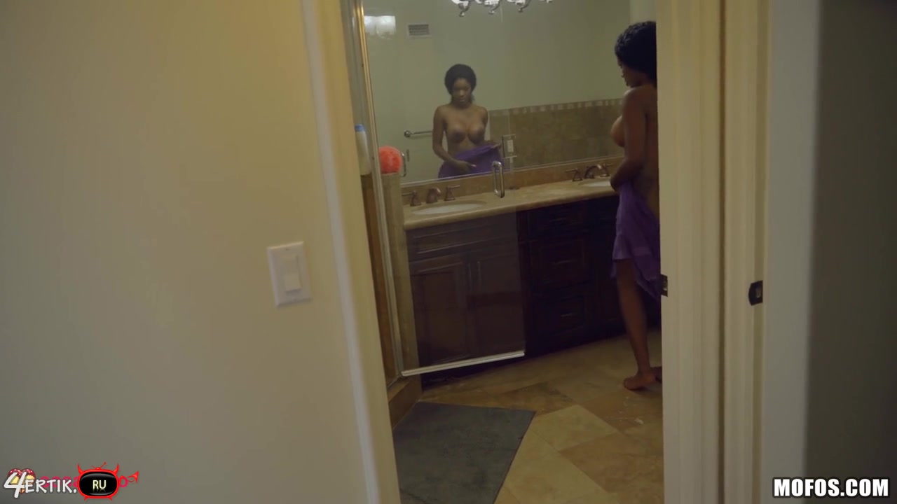 «Белый парень подсматривает весь дань за красивой чернокожей подругой. Сперва он наблюдает за тем как негритянка занимается спортом, потом девчонка мастурбирует киску на кровати, а после дрочки идет принимать душ. Пацана и раньше возбуждала эта жаркая бестия, а сейчас его сексуальное желание становится просто запредельным. Короче говоря, он предлагает свой стоячий хер и девчонка спешит взять его в ротик.»