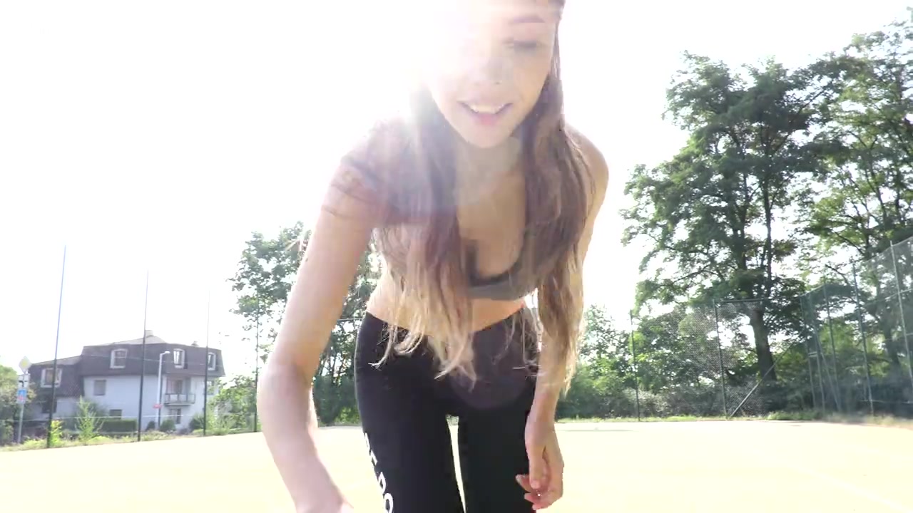 «Нереально красивая молодая девушка с шикарным худеньким телом, решила немного поиграть с мячом на баскетбольной площадке. Во время игры грудастая куколка изрядно возбудилась и вскоре решила не сдерживать в себе пошлых мыслей и немного пошалить у речки. Уединившись на берегу водоема девица эротично сбросила с себя спортивную форму и нежными прикосновениями пальчиков принялась мастурбировать киску, предвкушая в финале именно тот судорожный оргазм без которого она не может прожить и дня.»