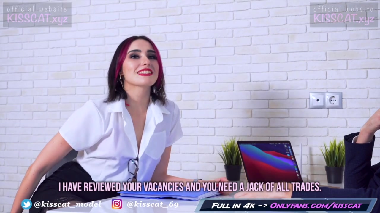 «Обворожительная девушка работая в офисе начала проводить собеседование с русским парнем. Жеребец оценил горячую бестию в сексуальных черных колготках, и не сдерживая в себе желания ей вдуть прямо на рабочем месте, попросил малышку показать как она шалит с попавшимся ему на глаза дилдо. Девчонка с радостью показала как она себе делает себе приятно когда рядом нет мужика, и как только самец выставил ей настоящий мясистый фаллос, она стала на коленки и застрочила минет так глубоко на сколько позволила глотка. После прелюдии хахаль нацелился на узенькое влагалище, а далее и в попку, присовывая в дырочки до полного их совместного удовлетворения.»
