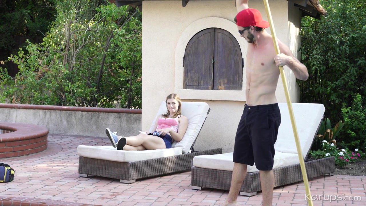 «Хорошенькая молодая девчонка отдыхая у бассейна начала засматриваться на мужчину, который прибирался у нее дома. Малышка сразу дала ему понять что не против пошалить, и вскоре ловелас ответ ее в дом, где сучка стала на коленки и поработала губками. После отменной прелюдии пихарь поставил бестию раком и полизал ей щелку, в которую с явным удовольствием на лице вошел во внутрь влагалище членом, получая в ответ заслуженные им женские стоны, которые не умолкали на протяжении всего полового акта до полного их совместного удовлетворения.»