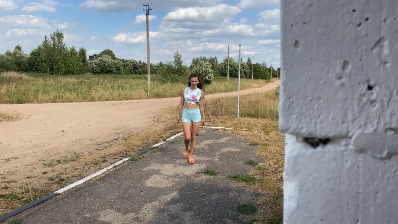 «Стройная русская девушка пришла на автобусную остановку, но долгое ожидание вызывает скуку. Крошка здесь одна, а потому запустила пальчики в трусики и стала дрочить. Она оглядывалась и продолжала мастурбировать бритую киску, но вдруг молоденькую шалунью поймали. Это был незнакомец, чей толстый член будет по вкусу уже возбужденной красавице. Отсосав, она согласилась уединиться в его тачке, где раздвинув ножки готова бурно трахаться от первого лица. А главное эта русская крошка не против если ей кончат на живот после секса в машине.»