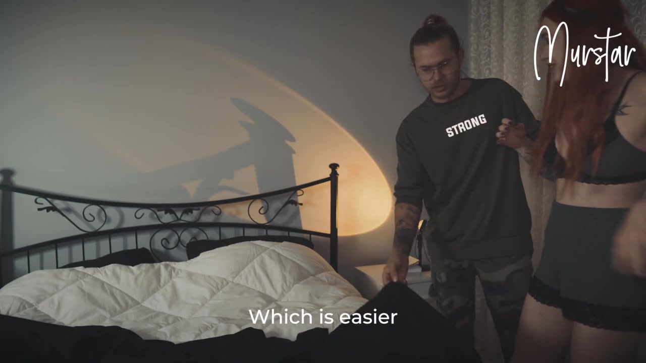 «Не очень ловкая рыжая мачеха пыталась просто вставить одеяло в пододеяльник, но у хозяйки даже это не получается. Благо пасынок был дома, под руководством которого жопастая красотка не только все сделает, но еще и будет классно выебана. Всему виной ее попка, ухватившись за которую чувак быстро лишил сучку трусиков и начал пошлые игры с киской. Рыжая лишь игриво стонала от кайфа, понимая, что ее вот-вот трахнут. Но прежде пришлось отлично отсосать, а точнее сделать глубокий минет. Теперь уже раком аппетитную потаскуху можно жарить по полной, чтобы ее обвисшие сиськи шлепали пока не кончат внутрь пилотки.»