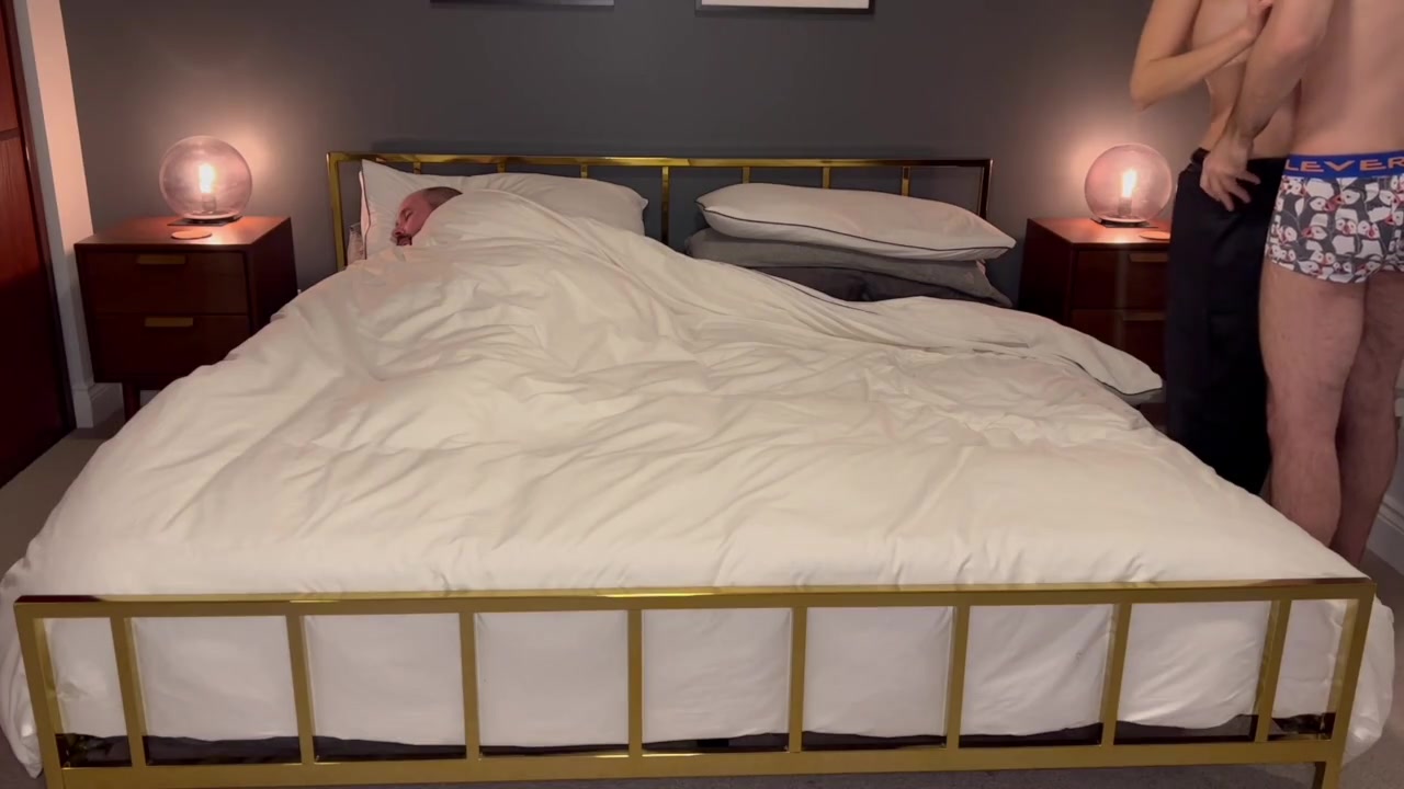 Развратная мачеха тихо трахается с горячим пасынком пока муж спит рядом на кровати