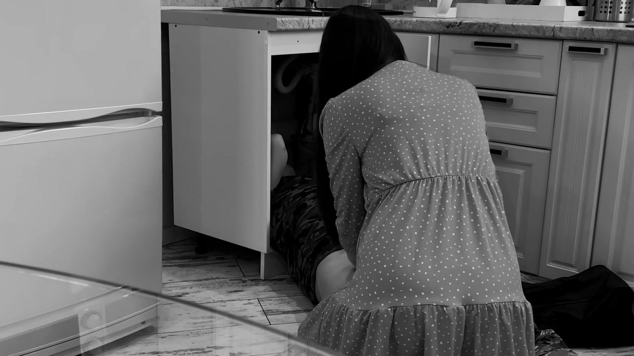 Возбужденной цыпочке пришлось вызвать сантехника и развести его на страстный секс