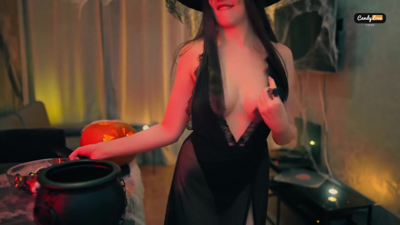 Ведьма с классными сиськами оседлала жилистый хуй вместо метлы на Хэллоуин
