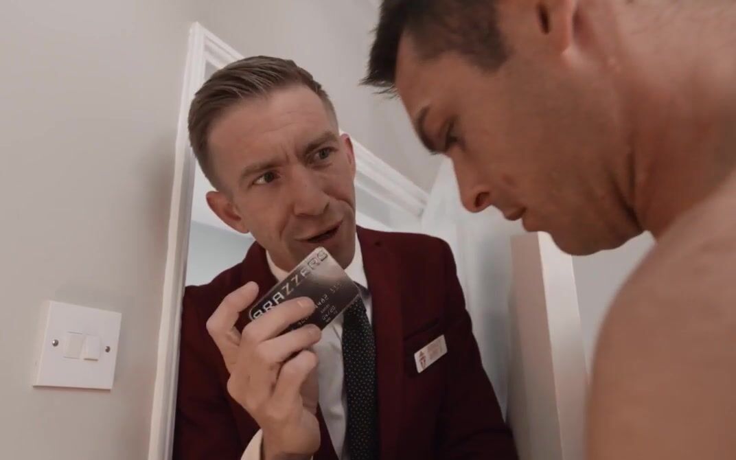 Портье в отеле подсматривает за двумя телками и предлагает большой член