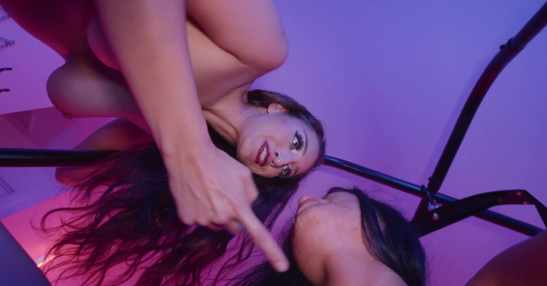 Лесбиянка трахает телку на секс качели до прихода парня