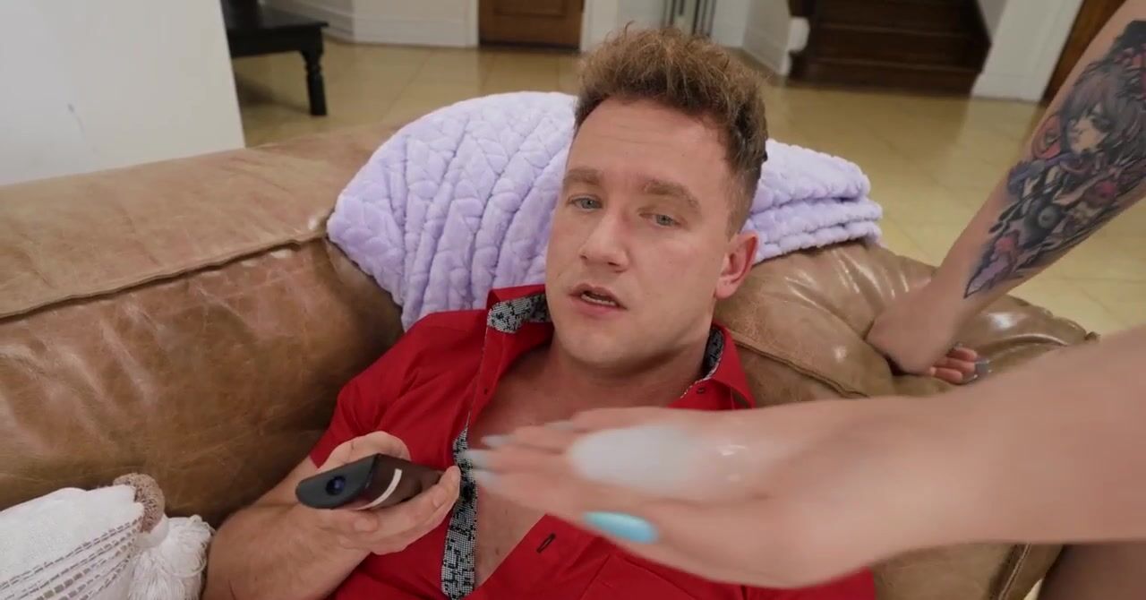 Пацан на диване трахает двух сочных телок с большими сиськами