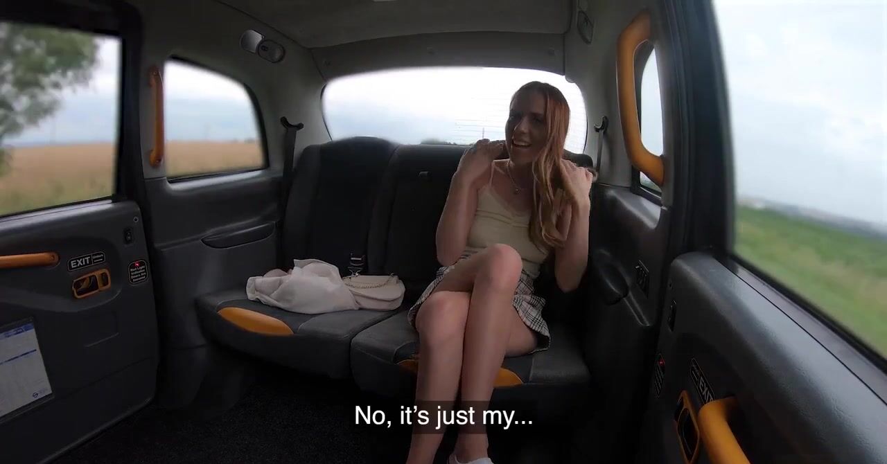 Рыжая пассажирка показывает трусики и соблазняет таксиста
