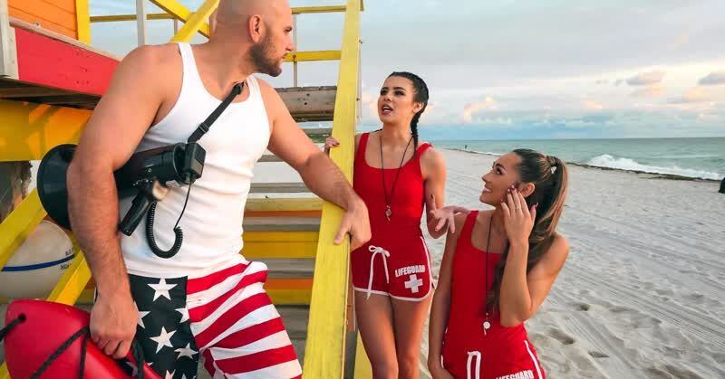 Спасатель Малибу трахает двух телок, проводя стажировку