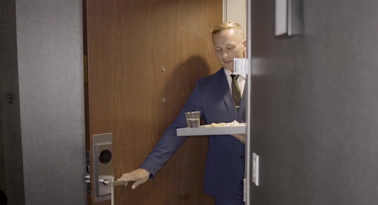 «Красотка заказывает в номер не только еду, но и секс. В этом отеле так можно. Привлекательный мужчина спешит сбросить свой костюм и засаживает пенис белокурой бестии в киску, принимаясь её страстно трахать. Цыпочка получает нереальный кайф, она наслаждается как половым актом, так и кунилингусом, а так же бестия делает смачный минет. Жаркая сучка захотела, чтобы жаркая ебля закончилась спермой на её лице.»