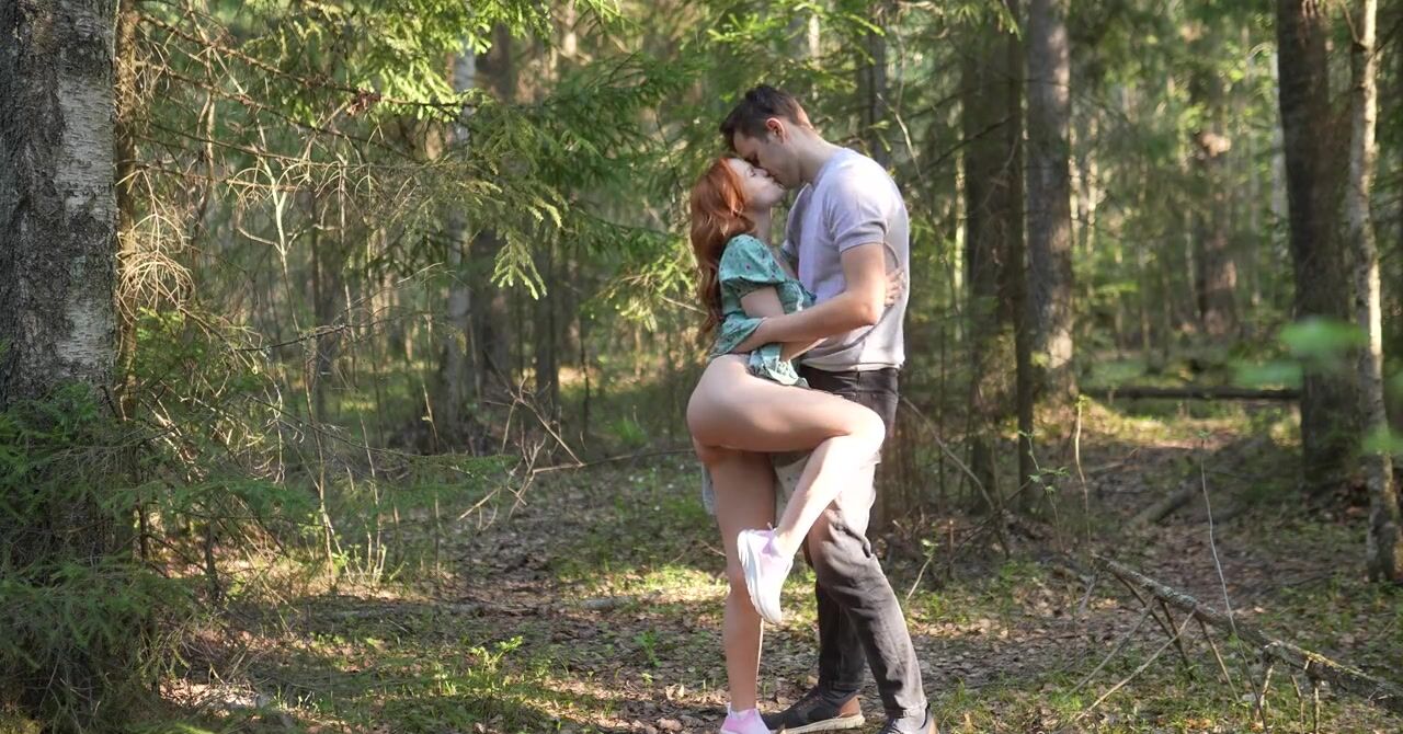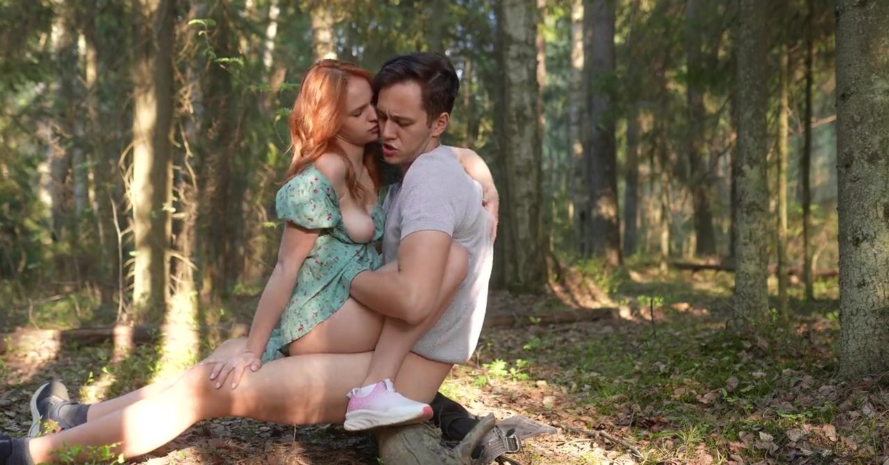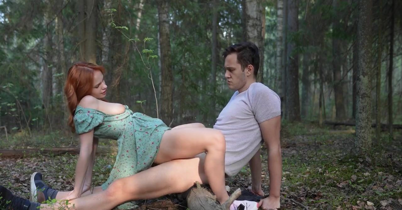 «Рыжая красотка выбралась с любимым парнем в лес и прогулялась с ним, дико возбудившись от такой романической прогулки. Уже вскоре игривая цыпочка в легком платье начала намекать на интим, показывала упругую попку и трусики. Эта проказница сделала бойфренду минет и встала раком, спустив бельё. Крошка прекрасно провела время, получив оргазм, а потом попросила любимого, чтобы тот украсил её личико спермой.»