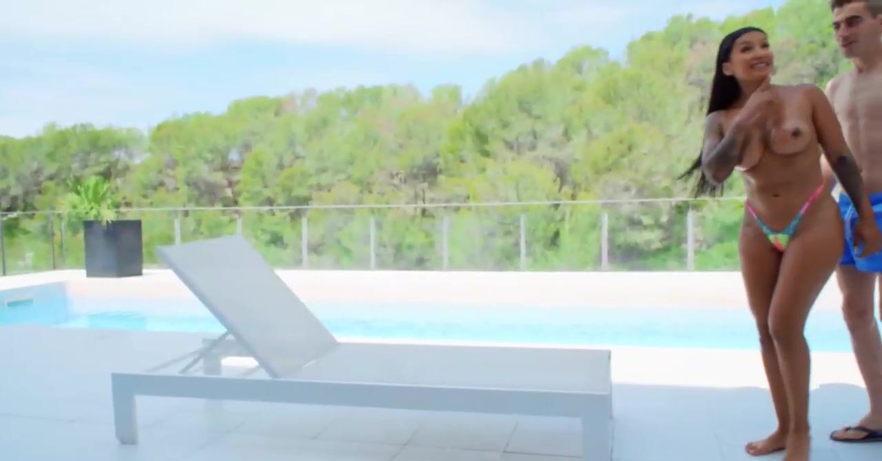 «Уставший муж во время отдыха случайно засыпает около бассейна, его татуированная женушка не теряет время, она соблазняет молодого паренька, член которого вскоре принимается смачно отсасывать. Брюнетка с силиконовыми сиськами изменяет благоверному и получает удовольствие. Она жарко поработала ротиком и насладилась вагинальной еблей с окончанием на лицо. Малознакомый молодчик удовлетворил её по полной.»