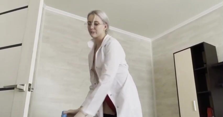 «У парня хорошая медицинская страховка, у него не только бесплатное медицинское обслуживание, но ещё и возможность заниматься сексом с привлекательной медсестрой. Эта белокурая цыпочка приезжает к нему на дом, чтобы взять анализы, а потом берется делать минет и отдается в киску. Довольный парень наслаждается ротиком и бритой писей привлекательной бестии в черных чулках. Медицинская работница тоже получила удовольствие.»