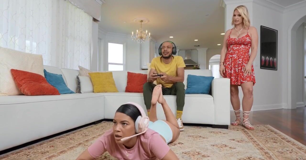 Играет на приставке с сестрой и ебет белокурую мачеху
