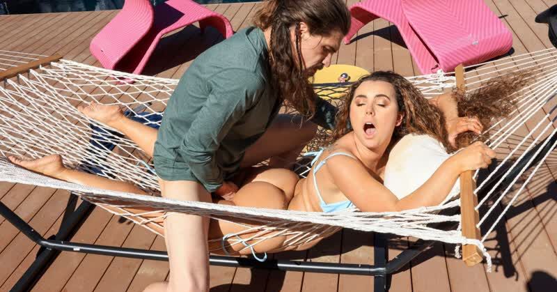 Парень не дает красотке отдыхать на гамаке, а ебет её в очко