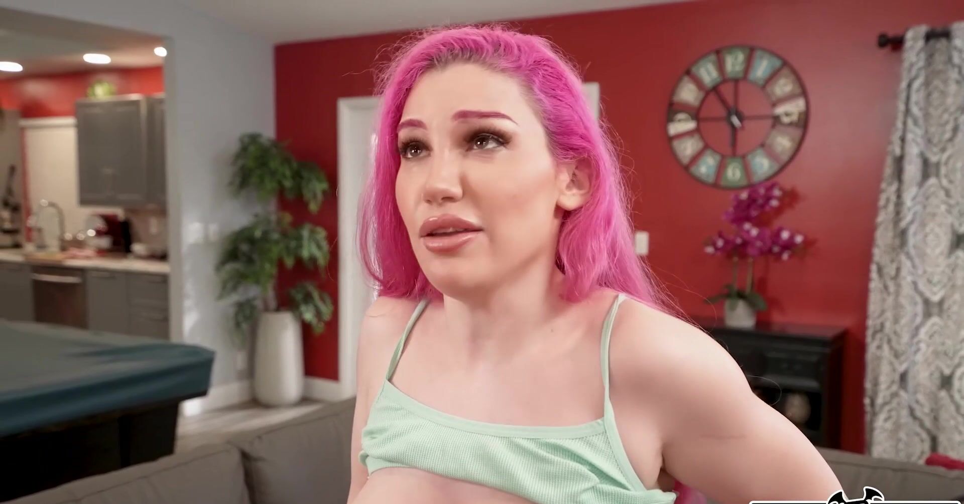 «Молодой чернокожий тренер видит большие натуральные сиськи сочной милфы с розовыми волосами. Эта опытная бестия сама предлагает помацать свои грудки, а потом и сексом хочет заняться. Развратница с кайфом берется полировать фаллос молодчика и наслаждается вагинальной еблей на диване, не сдерживая стоны удовольствия. Этой мамочке секс нравится намного сильнее, чем спорт. Парень даже кончить ей в пизду может.»
