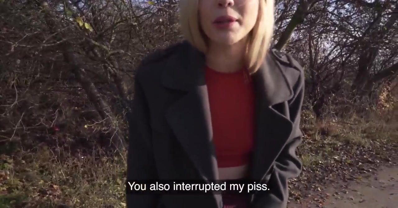 «Девка думала, что ей удастся пописать в кустах и никто ничего не заметит. Но заметил мужик, который сразу уже возбудился и предложил деньги привлекательной телке без комплексов. Та не стала отказываться, она пошла за новым знакомым и отдалась ему в бритую пилотку. А так же цыпочка поработала своим ротиком как следует и сделала смачный минет самцу. Белокурая девица даже позволила за доплату наполнить её манду спермой.»