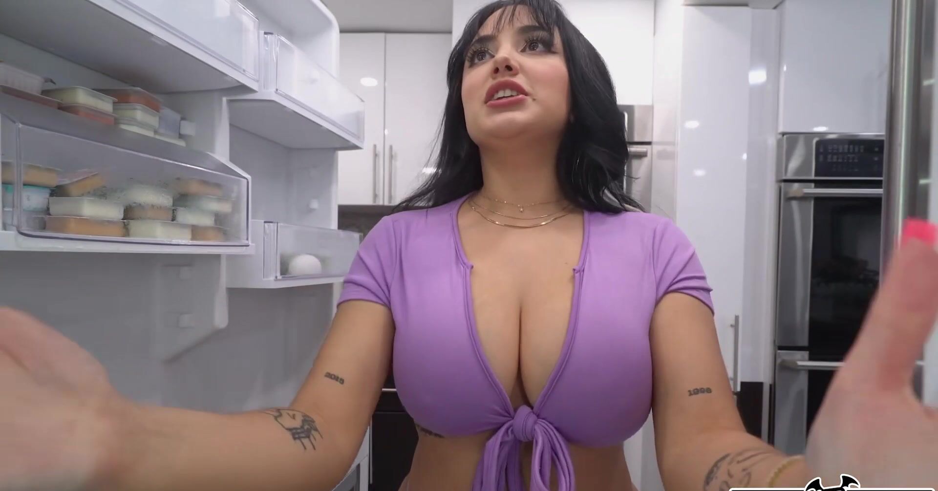 Белая телка с большой жопой соблазняет черного соседа на еблю