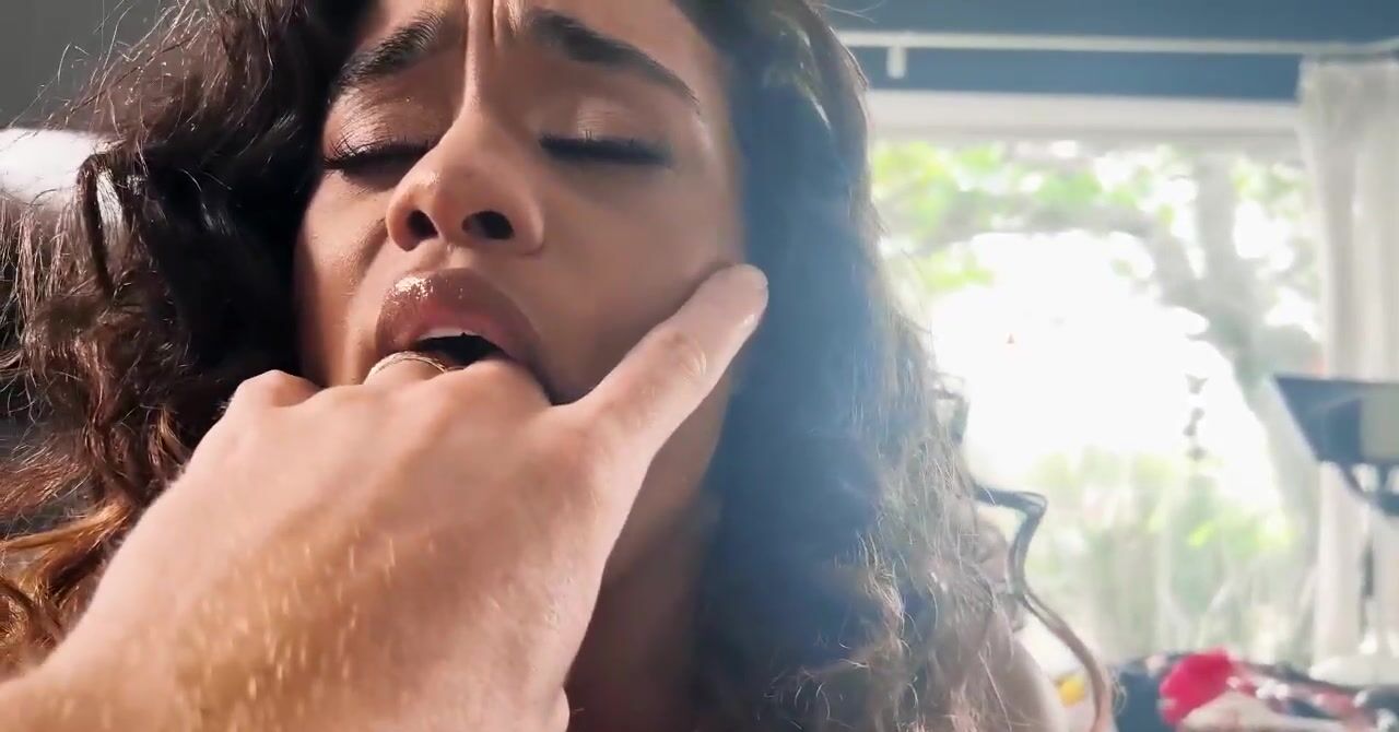 «Мужик сперва на кровати вылизывает влажную пизду красивой мулатки, которая его нереально возбуждает. А потом смуглая цыпочка с рыжими волосами предлагает вместе принять душ, где она берет крепкий хуй в ротик и отдается в вагину, наслаждаясь бурным половым актом. Межрасовая пара страстно ебется и доставляет наслаждение друг другу. Игривая крошка с кудрявыми волосами просит украсить её лицо спермой в конце.»