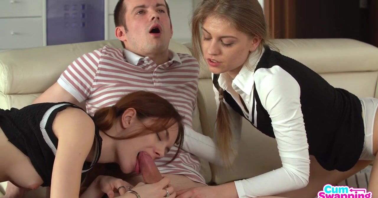 «Пацан оборачивается и видит как его худенькая сводная сестра целуется со своей подругой. Эти игривые студентки в гольфах и коротких юбках выглядели нереально возбуждающе. Это заставило сводного брата отвлечься от игры и заняться с ними групповым сексом. Он достал свой пенис и угостил цыпочек крепким хуем, который девчонки тут же стали игриво отсасывать. Было видно, что они получают нереальный кайф от минета и секса.»