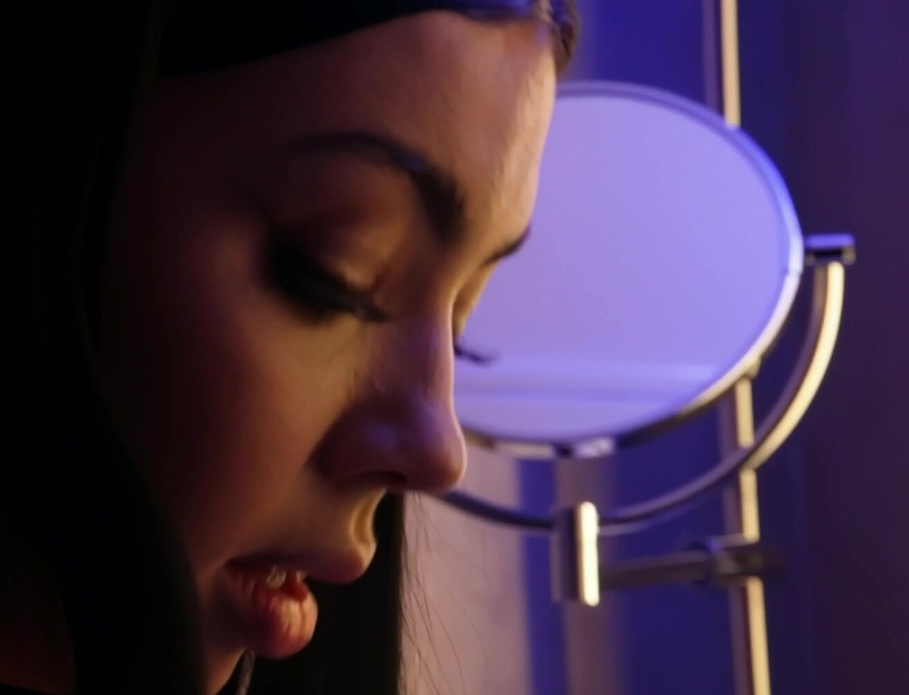 «Красивая проститутка получает деньги, а уже потом удовлетворяет клиента. Привлекательная брюнетка с сочным телом уединяется в ванной комнате и там переодевается. Черноволосая цыпочка с большой жопой надевает сексуальное белье, после чего принимается ублажать молодчика. Она делает ему смачный минет и садится на лицо, ведь парню захотелось сделать ей куни. Жаркая развратница сама получила удовольствие от работы.»