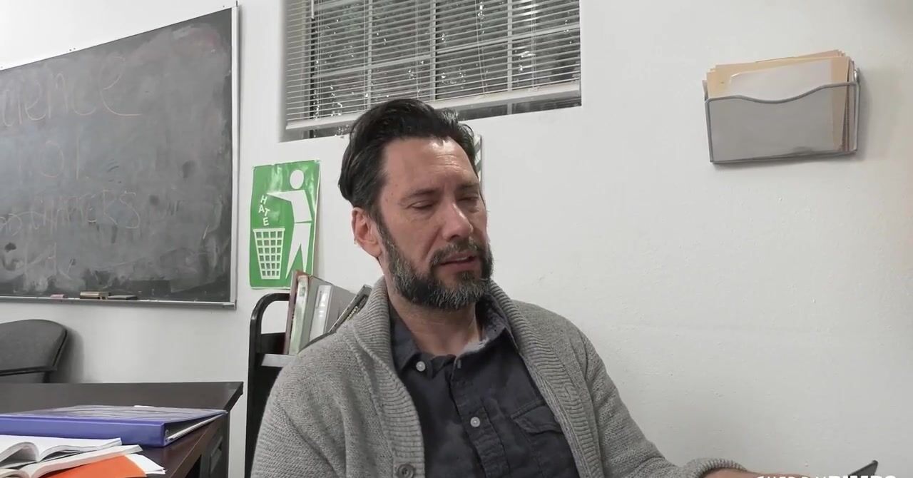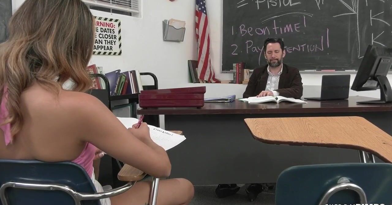 «Учитель проводит дополнительное занятие с отстающей студенткой и, чтобы не скучать, принимается мастурбировать. Вскоре белокурая телка в короткой юбке застает его за этим интимным занятием. Стройная цыпочка возбуждается и предлагает заняться сексом, догадываясь что именно об этом мужик и думал. Игривая крошка принялась смачно полировать его хуй и отдалась в мокрую пизду на столе, издавая громкие стоны.»