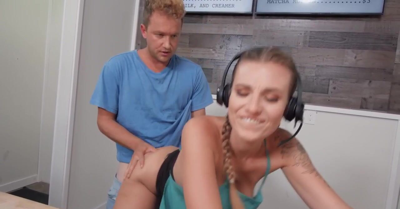 «Красивая телка работает в кофейне и соблазняет понравившегося парня на жаркий секс. Её не смущает тот факт, что клиент приехал не сам, а со своей девушкой. Бариста принимается страстно сосать его хуй сразу в машине, а потом продолжает активно работать ротиком уже в заведении. Чел никогда не трахал столь пошлую и раскрепощенную телку. Бестия насладилась еблей по полной и получила сперму на лицо после нескольких оргазмов.»