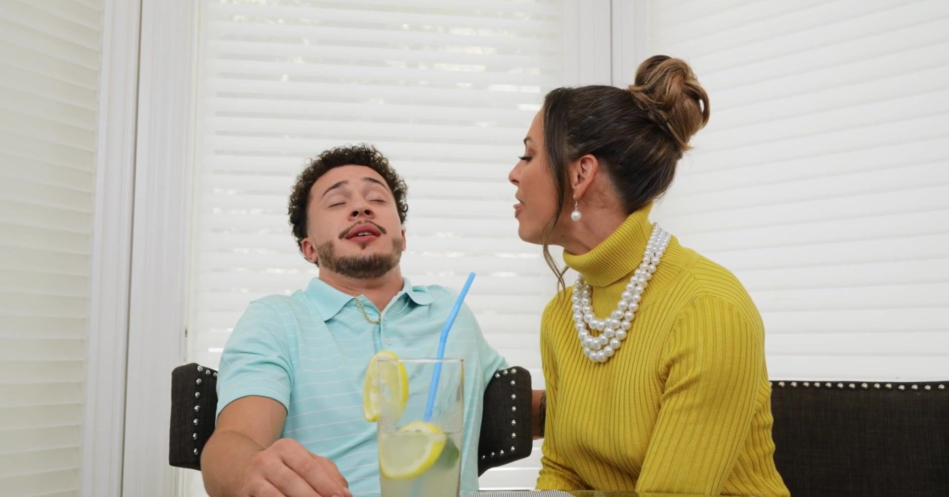 «Ненасытная милфа, которую редко трахает муж, решает соблазнить на интим его молодого приятеля, который приходит в гости. Развратная бестия с силиконовыми сиськами заводит его в ванную комнату и там набрасывается на хуй. Сосет брюнетка прекрасно, она жарко работает ротиком и наслаждается оральными ласками по полной. Но особенно сильный кайф она получает от вагинальной ебли, кончает зрелка несколько раз.»