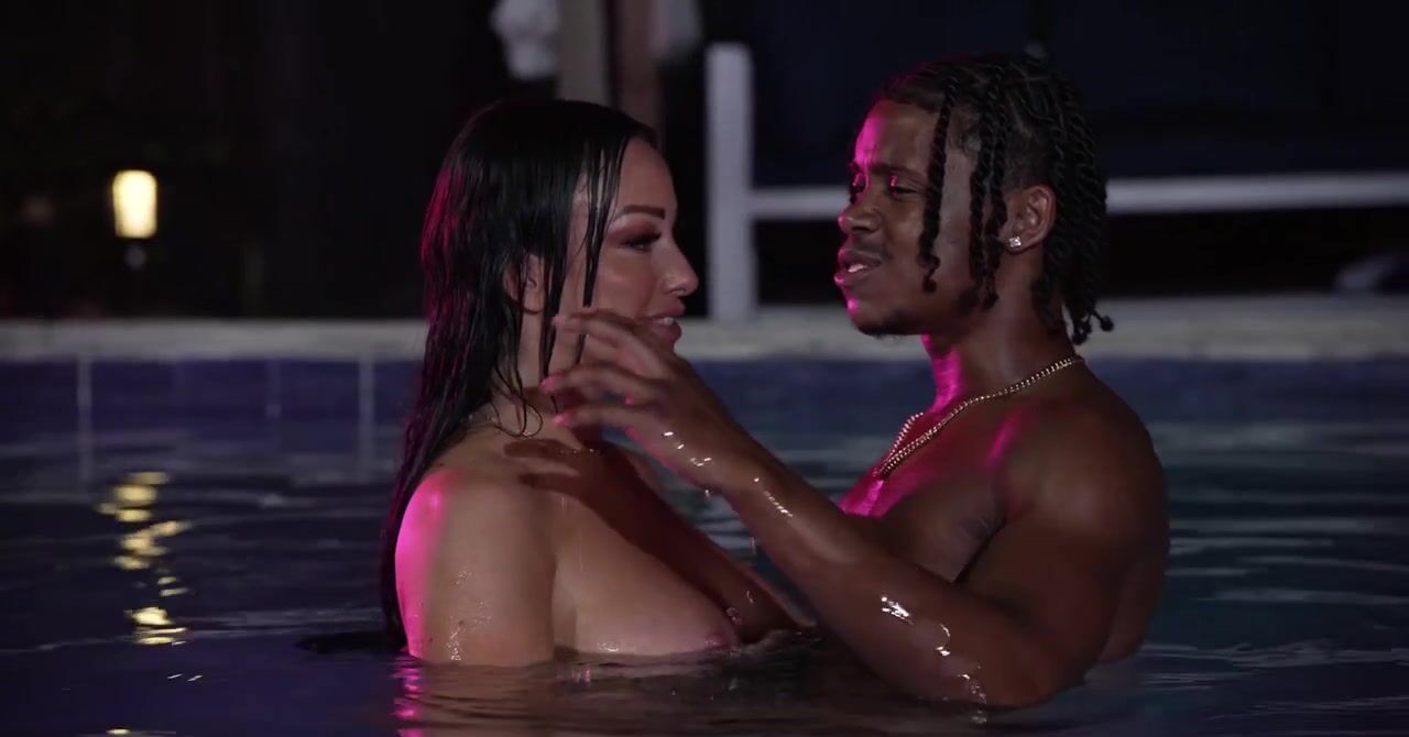 «Негр ночью подсматривает за привлекательной мамкой друга, которая плавает в бассейне. Он любуется телом зрелой женщины и, набравшись смелости, предлагает ей заняться сексом. Мамочка не отказывается от большого молодого члена, который она принимается смачно отсасывать. Привлекательная цыпочка берет пенис молодчика в ротик, а после минета наслаждается половым актом. Зрелая брюнетка кончает несколько раз.»