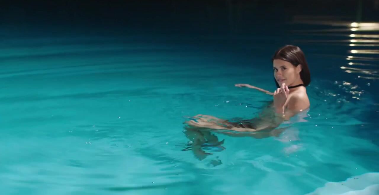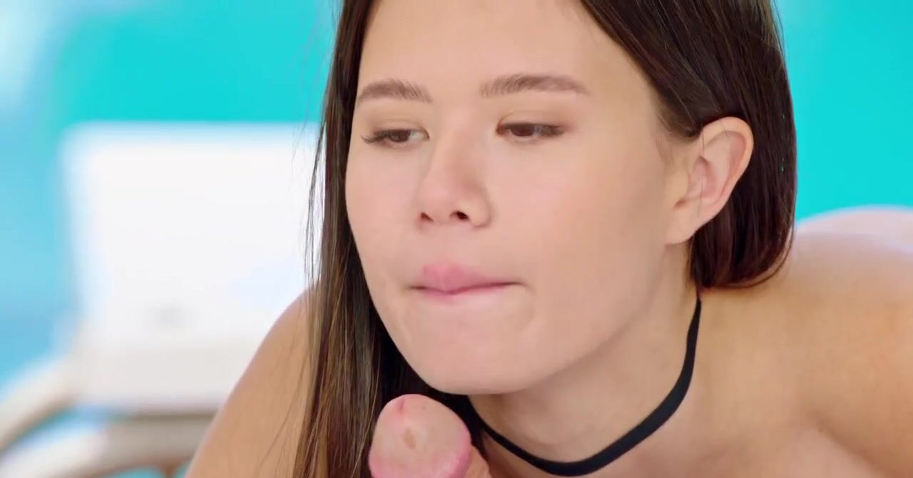 «Стройная красавица Evelin Elle у бассейна после плавания соблазняет спортивного парня на интим. Брюнетке с маленькими сиськами очень захотелось пошалить, поэтому она сбросила трусики и показала свою бритую пилотку. Пацана это возбудило, он принялся вылизывать её щелку, после чего угостил проказницу своим крепким членом. Пара занялась довольно страстным и чувственным сексом, который закончился камшотом на лице худышки.»