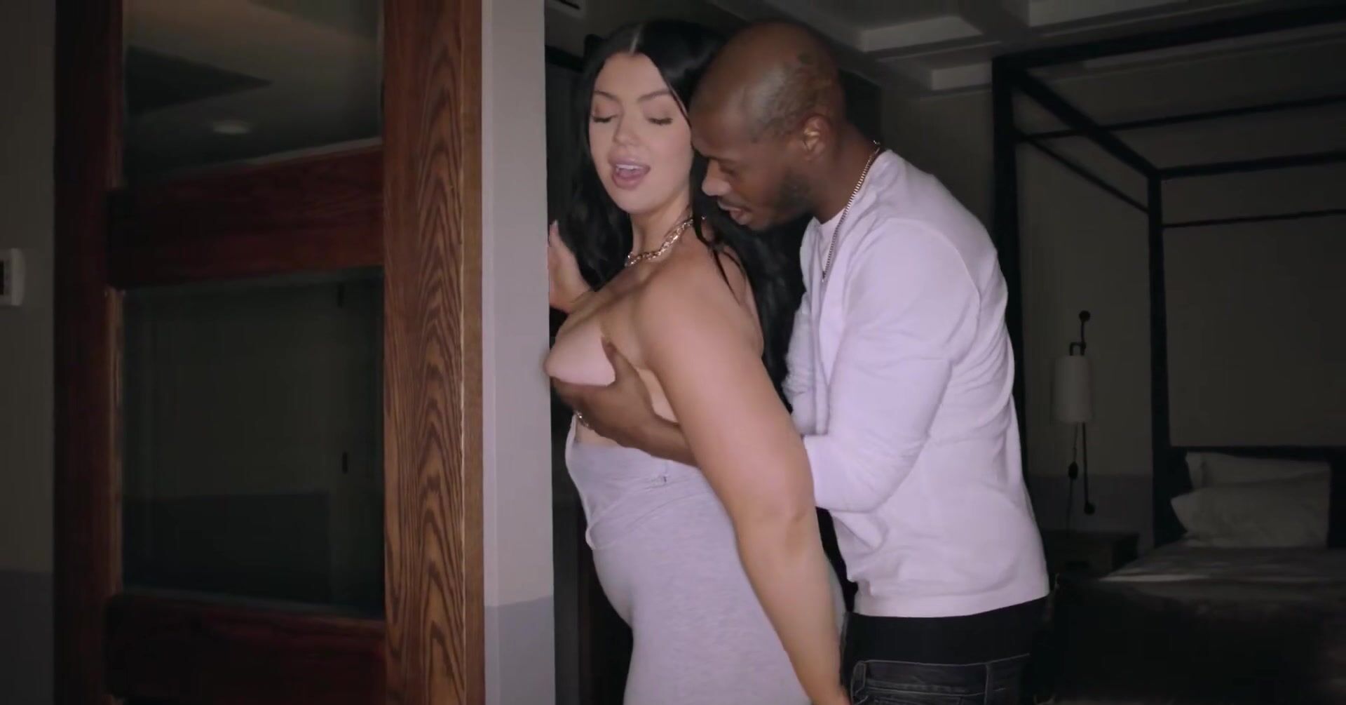 «Негру понравилось соблазнительное тело пышной брюнетки с сочной задницей. Он стал её возбужденно раздевать и приласкать попку проказницы, попутно вылизав её влажную пизду, которую черноволосая девка предварительно выбрила. Эта жаркая крошка насладилась половым актом по полной программе, а так же отсосала большой болт самца, доставляя ему удовольствие. Она прекрасно провела время и бурно кончила, а сперму получила на лицо.»