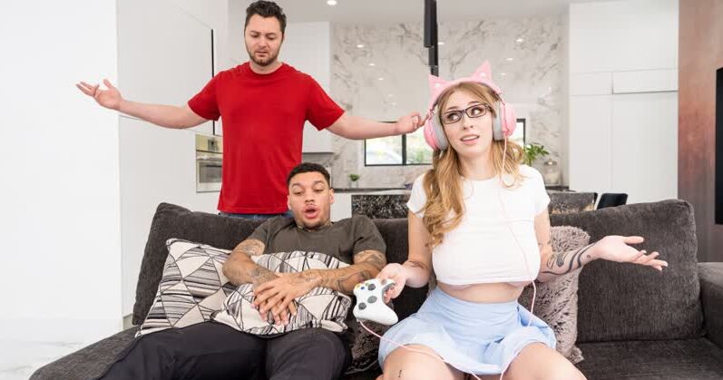 Негр трется о подмышку геймерши и жарко трахает её в очко