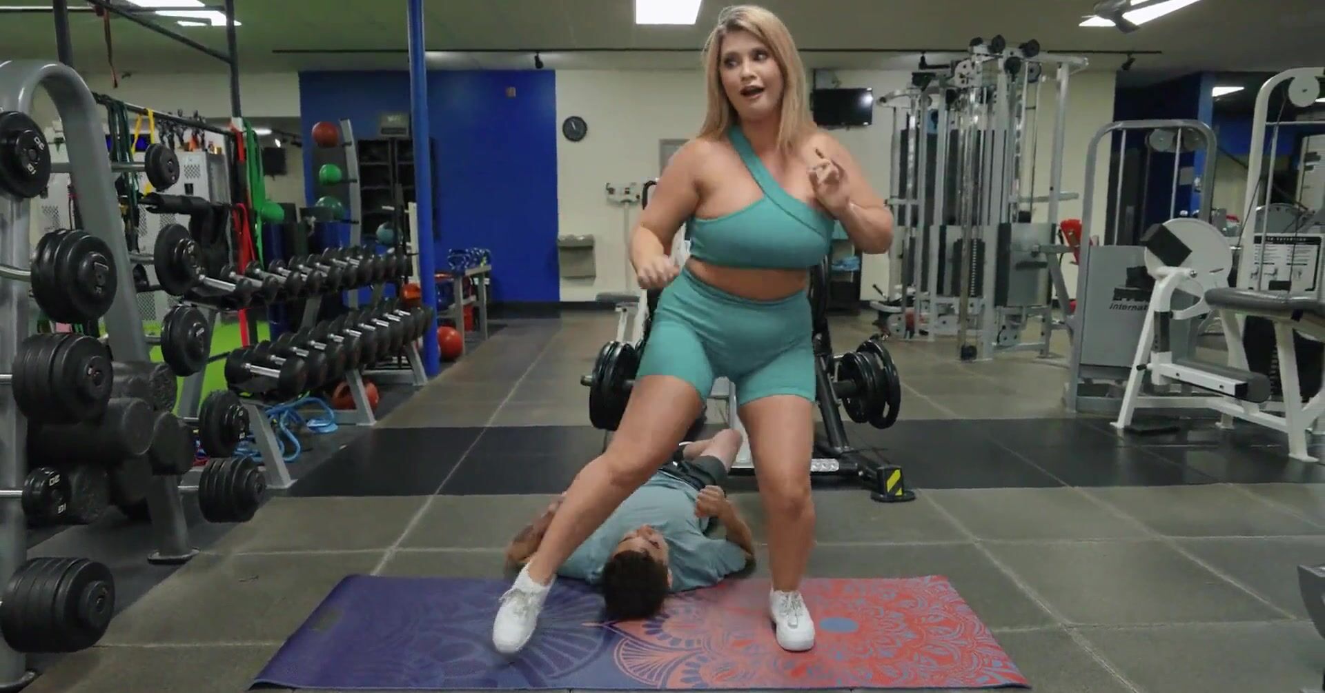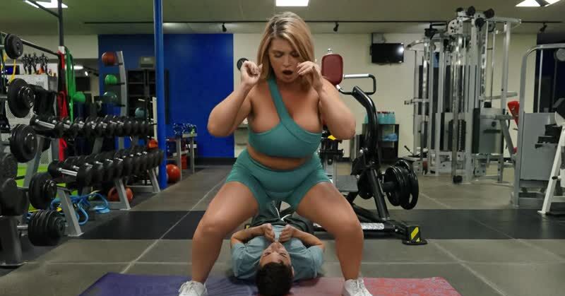 «Молодой пацан оценивает сочную попку полноватой милфы со светлыми волосами, которая только что занималась в спортзале. Молодчик идет за ней в раздевалку и там наслаждается жарким сексом с опытной бестией. Белокурая развратница с большими сиськами и жопой снимает шорты и показывает попку во всей красе. Чел вылизывает обе дырочки и угощает пенисом развратницу. Мамочка делает ему минет и наслаждается еблей.»