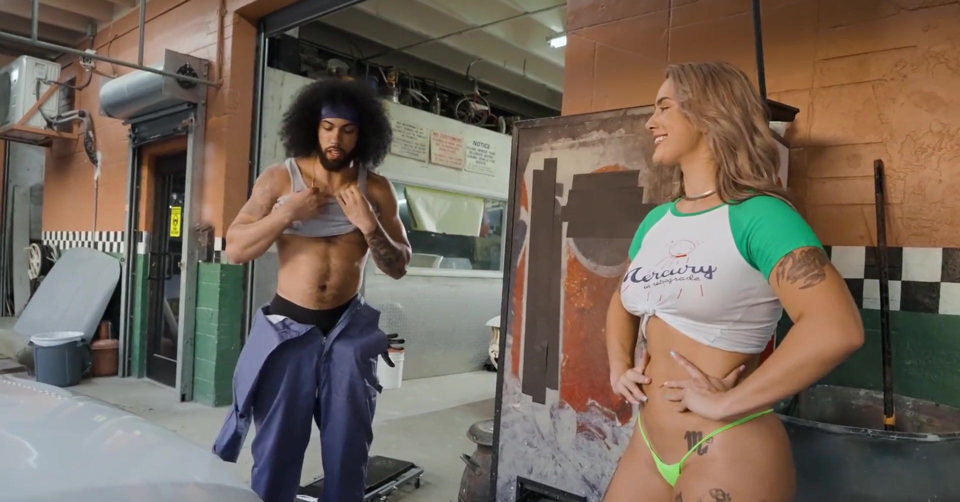 Чернокожий механик в мастерской страстно трахает красивую блондинку