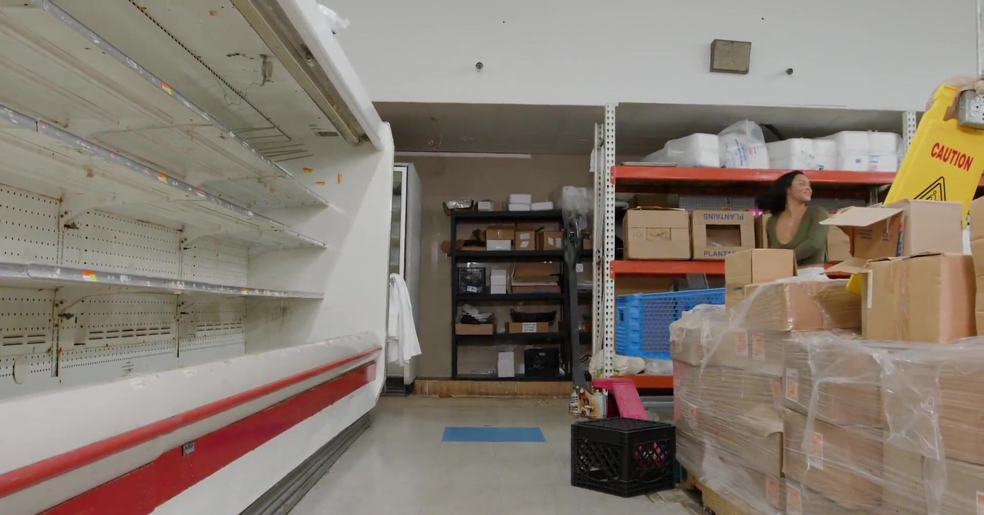 Молодой работник супермаркета трахает грудастую милфу в зале