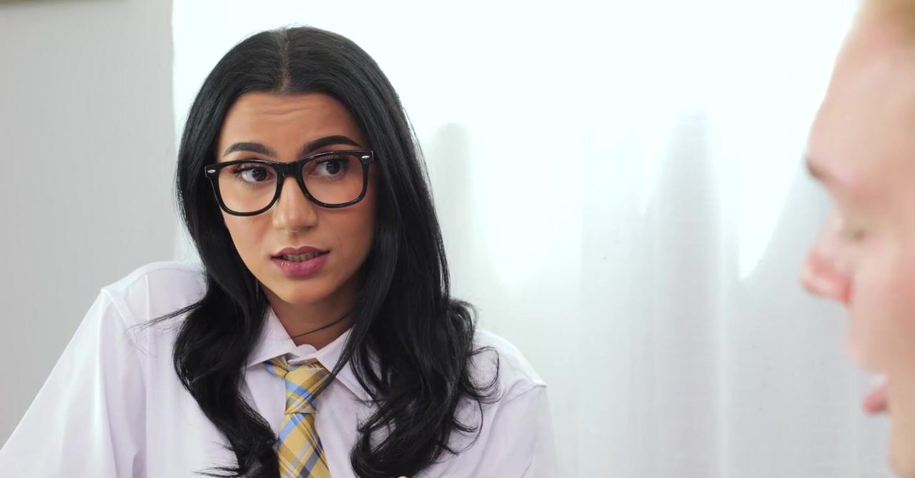 «Привлекательная студентка в короткой юбке решает порадовать однокурсника минетом. Парень пришел к ней учить уроки вместе, а игривая девчонка с большими натуральными сиськами залезла под стол и принялась отсасывать его фаллос. Далее эта брюнетка уже предложила заняться сексом и отдалась в пизденку. Она насладилась половым актом и позволила кончить в неё. Так учить уроки понравилось как парню, так и девке.»