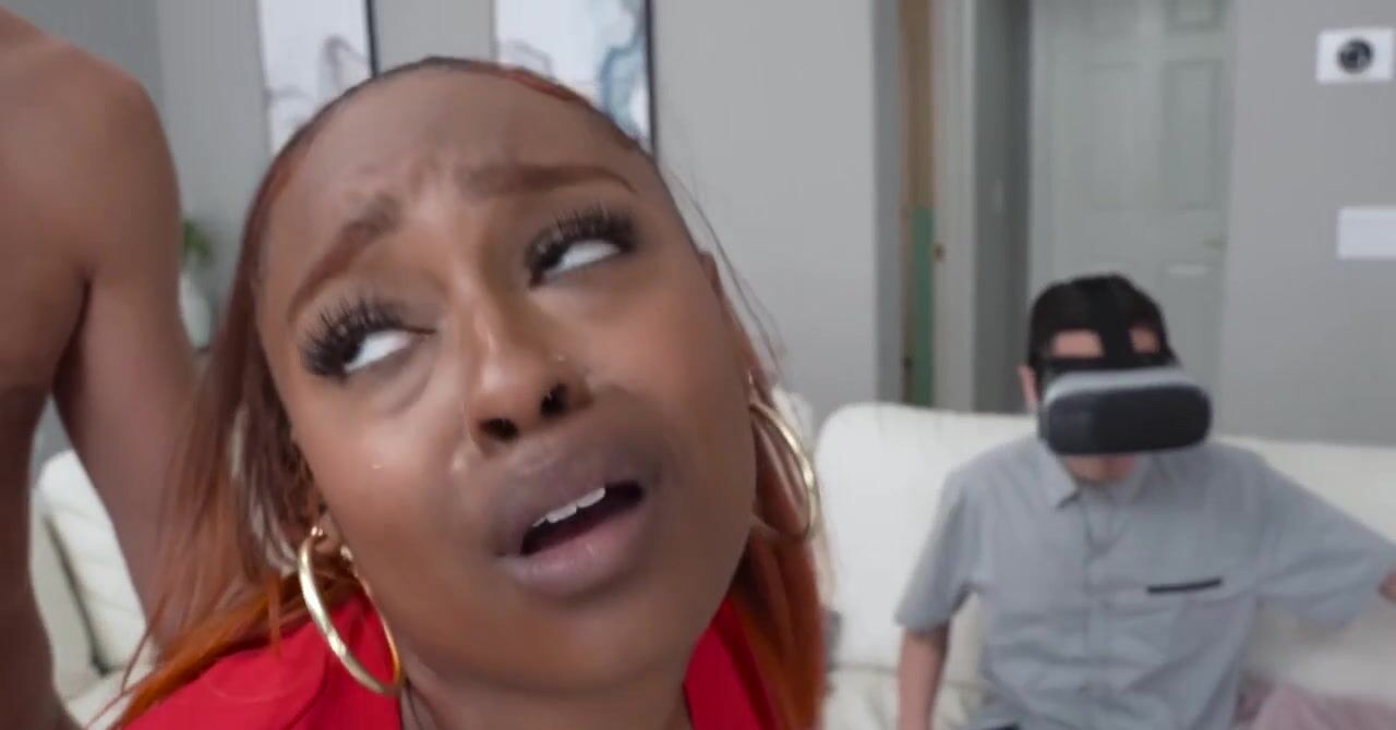 Муж сидит в VR очках, а черная жена ебется с его другом