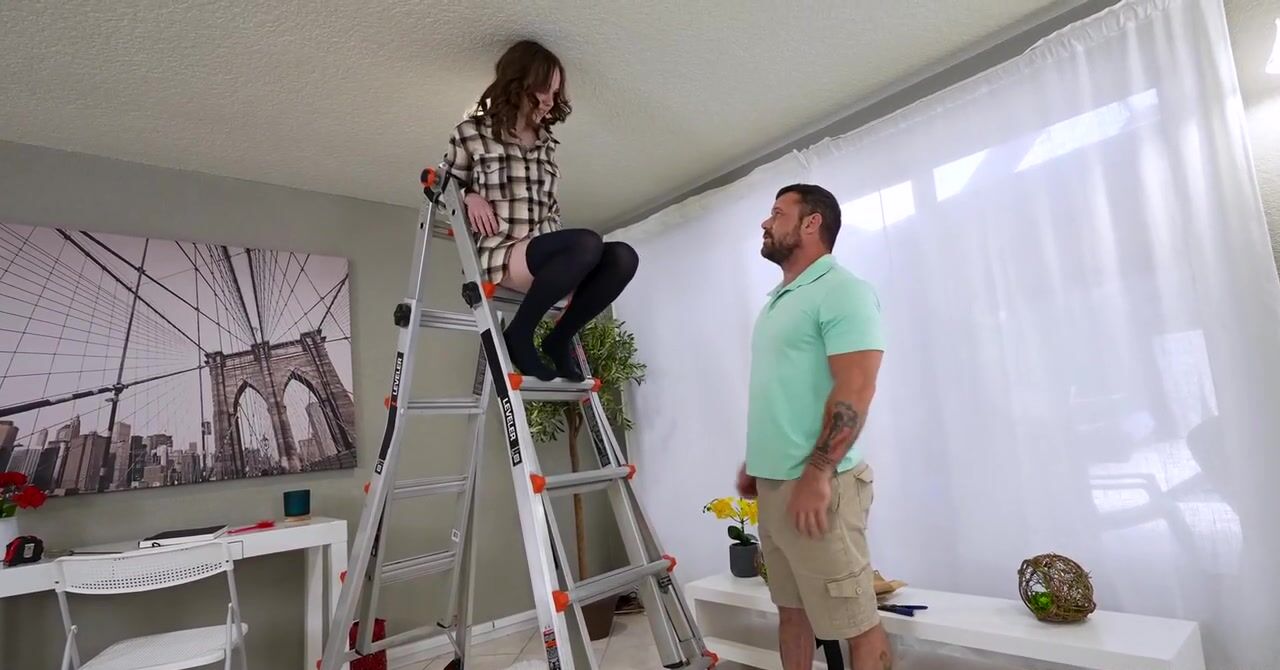 Мужик толстым членом трахает милую девушку электрика