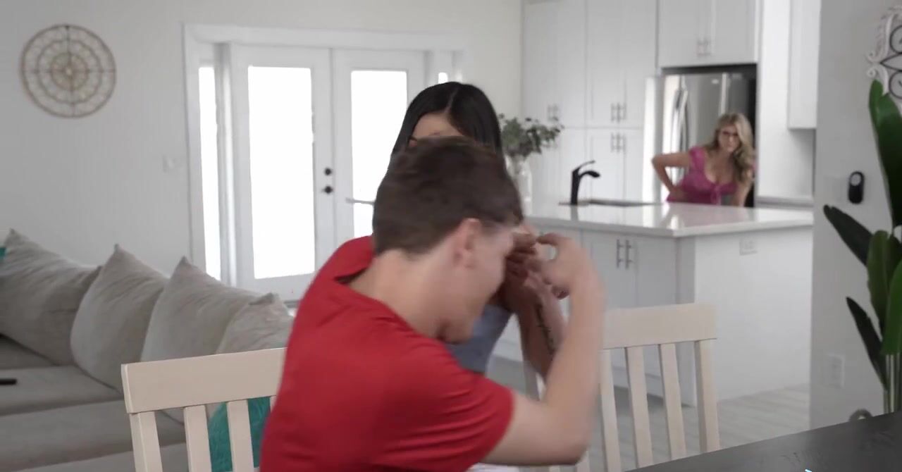 «Привлекательная мачеха с силиконовыми сиськами уже давно догадывалась о том, что пасынок занимается сексом со сводной сестрой. Вскоре белокурая бестия застала их за интимом в спальне и присоединилась, тоже желая насладиться половым актом. Смущенный молодчик не стал отказывать зрелой развратнице. Он угостил её своим пенисом и отжарил двух цыпочек на кровати. Кончил он в пизду мамки, как та и просила.»