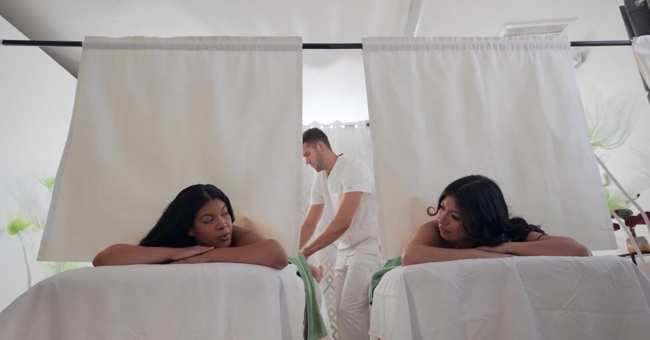 Массажист трахает одну клиентку пока вторая спит