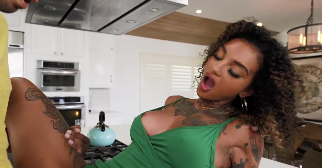 «Негру нравится новая девушка, но больше всего его заводит именно мамка этой телочки. Вот это настоящая женщина, она имеет шикарное тело и всегда откровенно говорит на самые развратные темы, совершенно не стесняясь. А когда они остаются наедине на кухне, кудрявая милфа с силиконовыми сиськами и татуированным телом предлагает пареньку заняться сексом. У неё оказывается ещё и пизда лохматой, а это отдельный фетиш пацана.»