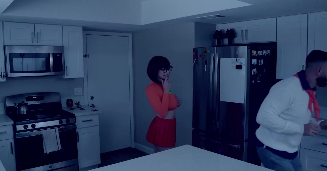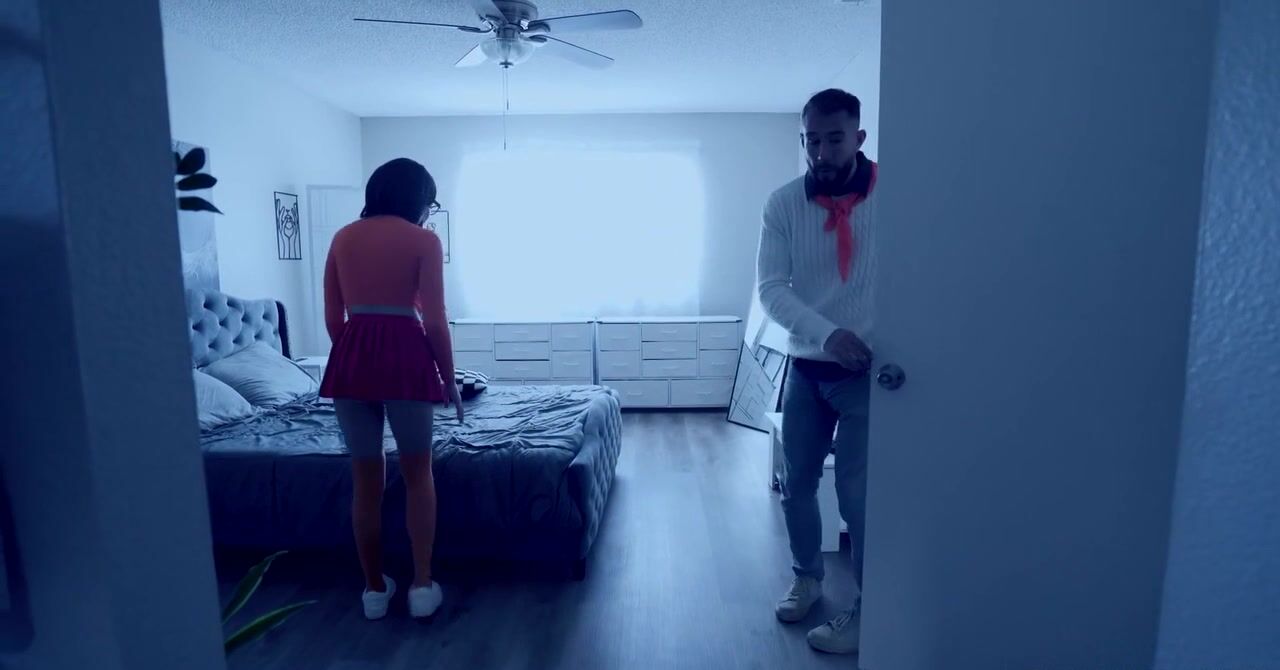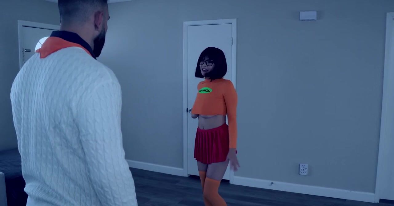 «Велма из Скуби-Ду ведет расследование вместе с Фредом. Они остаются наедине и привлекательная брюнетка в очках признается в своих чувствах, оказывается что Фред ей всегда нравился. Девчонка в короткой юбке и оранжевых чулках даже сексом ему предлагает заняться и он соглашается. Черноволосая бестия берется делать ему качественный минет, а затем отдается в пизду на кровати и получает оргазм от ебли.»