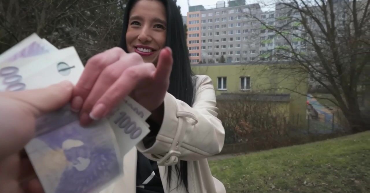 Симпатичная брюнетка шла по делам, но занялась сексом за деньги